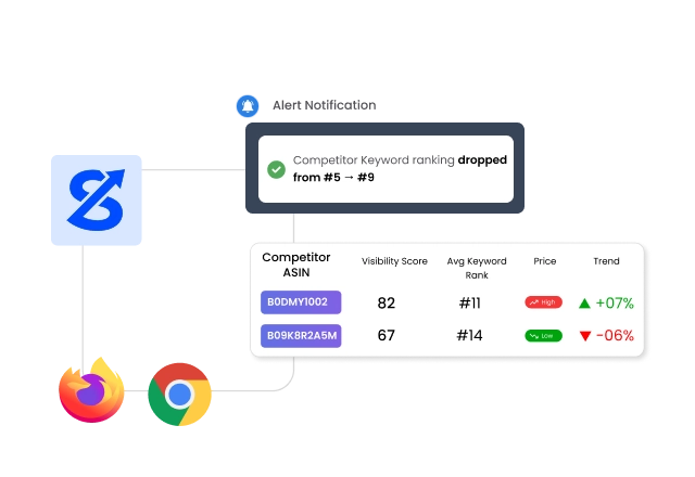 Monitor competitor ASINs and trending keywords across Amazon marketplaces worldwide.