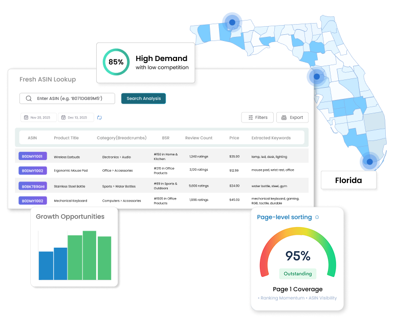 Winning on Amazon takes more than effort. It takes clear data. Squatio gives Florida sellers the insights they need to stay ahead of competitors. With strong ASIN analytics and visibility tracking, we turn market trends into clear growth actions. From improving an existing brand to finding your next winning product, Squatio tools support every decision with trusted data. Our platform helps sellers reduce risk and spot opportunities early. This allows brands to grow with confidence and consistency.
